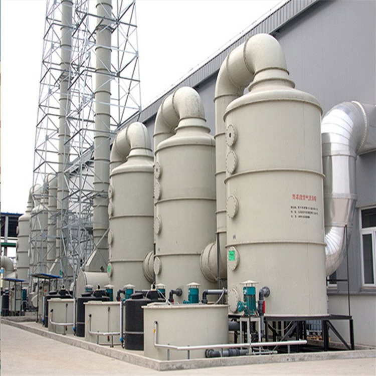 PP喷淋塔具有结构简单、能耗低、净化效率高的特点,能有效去除氯化氢气体(HCl)、氟化氢气体(HF)、氨气(NH3)、硫酸雾(H2SO4)、铬酸雾(CrO3)、氰氢酸气体(HCN)、碱蒸气(NaOH)、硫化氢气体(H2S)、福尔马林(HCHO)等水溶性气体。