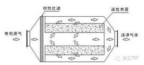 。利用活性炭多微孔的吸附特性吸附有机废气是一种有效的工业处理手段。活性炭吸附床采用新型柱状活性炭,该活性炭比表面积和孔隙率大,吸附能力强,具有较好的机械强度、化学稳定性和热稳定性,净化效率高达95%。如采用双次吸附床,使有机废气通过与活性炭接触,废气中的有机污染物被吸附在活性炭表面,从而从气流中脱离出来,达到净化效果。从活性炭吸附床排出的气流已达排放标准,可直接排放。